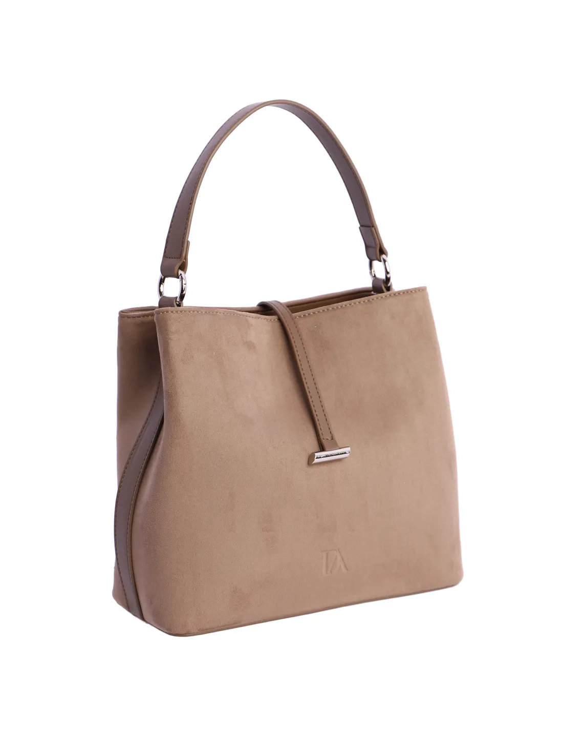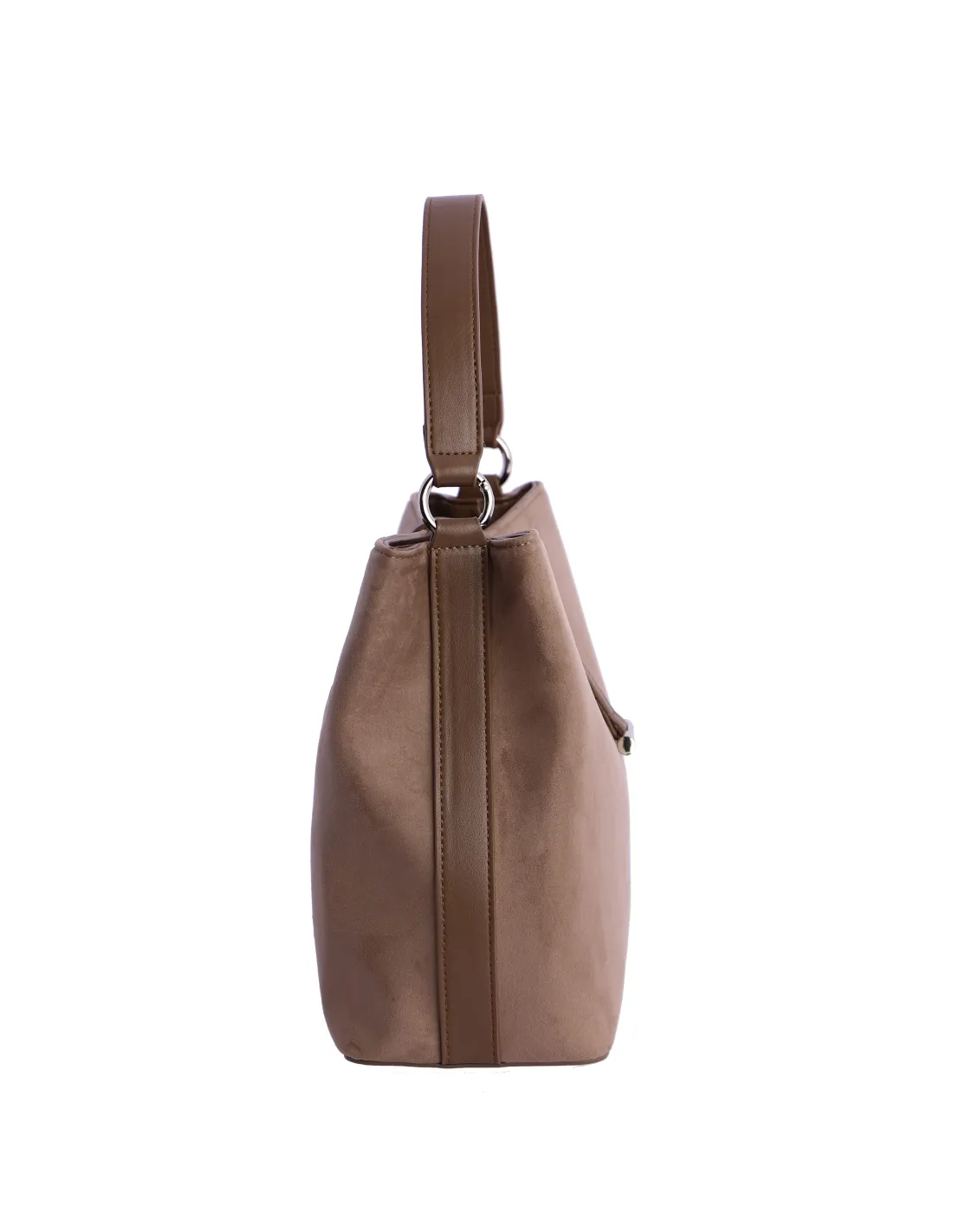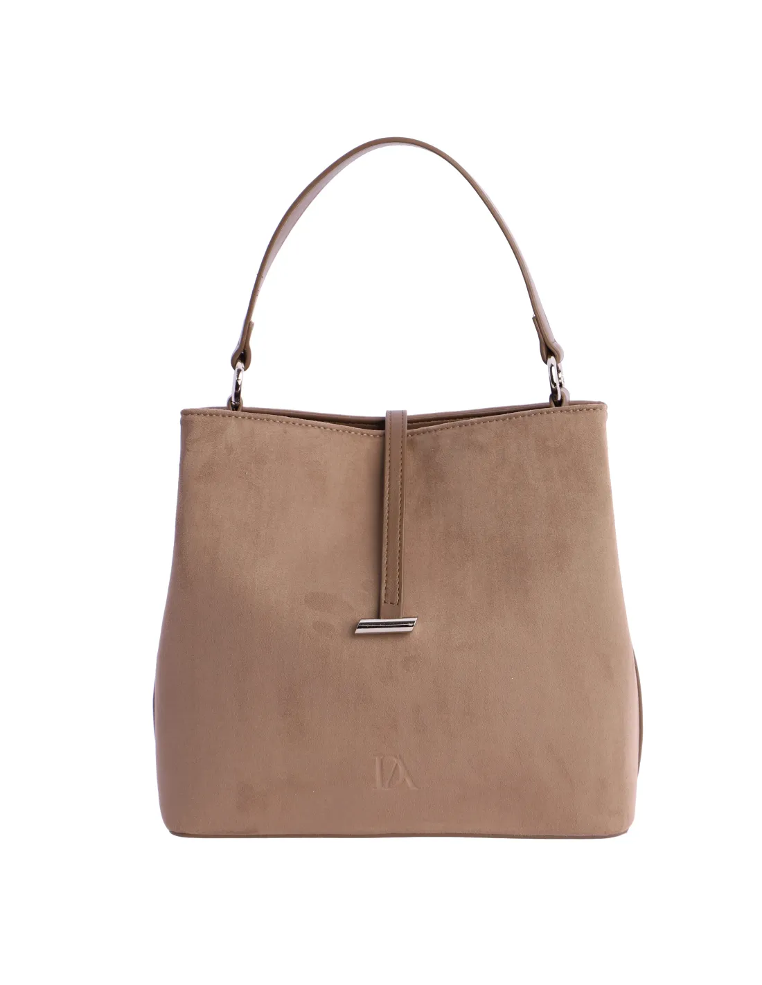 Bolso de la marca Don Algodón, confeccionado en suave antelina que le da un acabado elegante y agradable al tacto. De tamaño mediano, es ideal para llevar lo esencial sin renunciar al estilo. Cuenta con una cinta extra que permite llevarlo cómodamente colgado al hombro o cruzado, adaptándose a diferentes estilos y necesidades. Su diseño versátil lo convierte en un complemento perfecto tanto para el día a día como para ocasiones especiales.