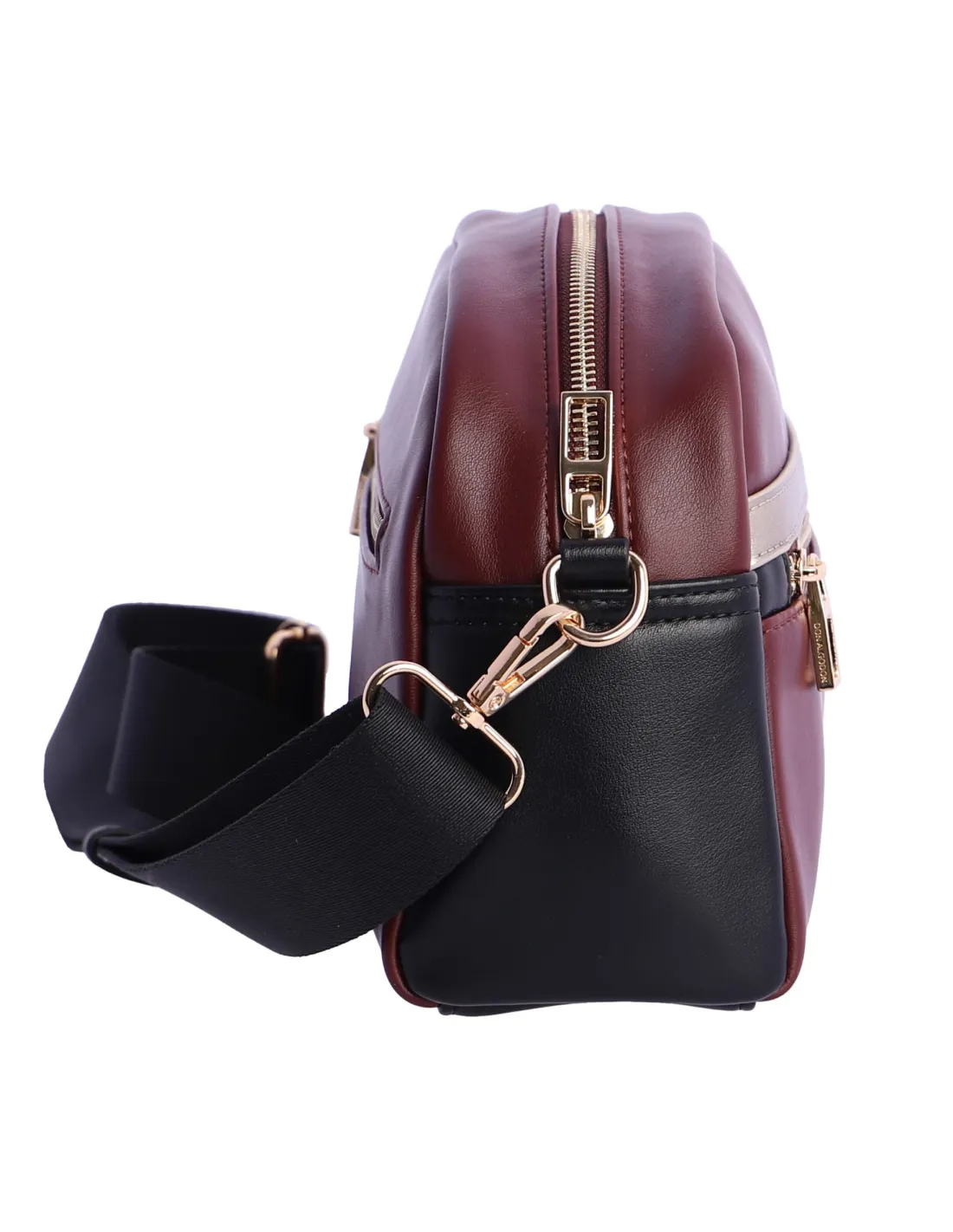 Su diseño combina dos tonos que aportan un toque moderno y versátil, perfecto para complementar tanto looks casuales como más arreglados. Compacto pero funcional, cuenta con un compartimento principal con cierre seguro y bolsillos interiores para una mejor organización.
