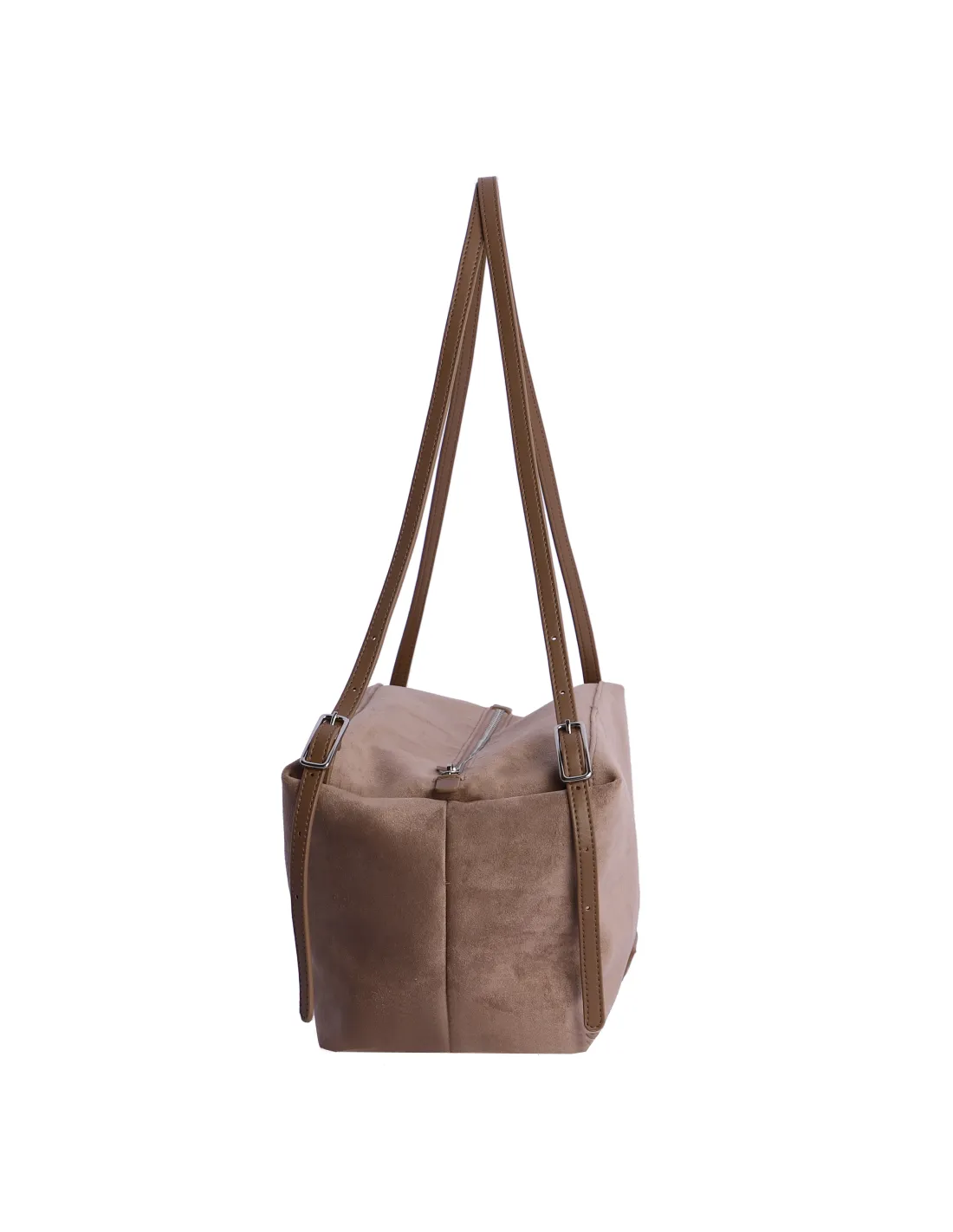 El bolso Amichi de antelina es un accesorio pequeño y elegante, ideal para quienes buscan un complemento cómodo y con estilo. Su diseño transmite sofisticación y el material de antelina aporta un tacto suave y un acabado refinado. De tamaño compacto pero funcional, permite llevar lo esencial en cualquier ocasión. Su asa está pensada para llevarlo al hombro con total comodidad, adaptándose tanto a looks casuales como más arreglados. Es un bolso versátil, práctico y con un encanto natural que lo convierte en una opción perfecta para el día a día.
