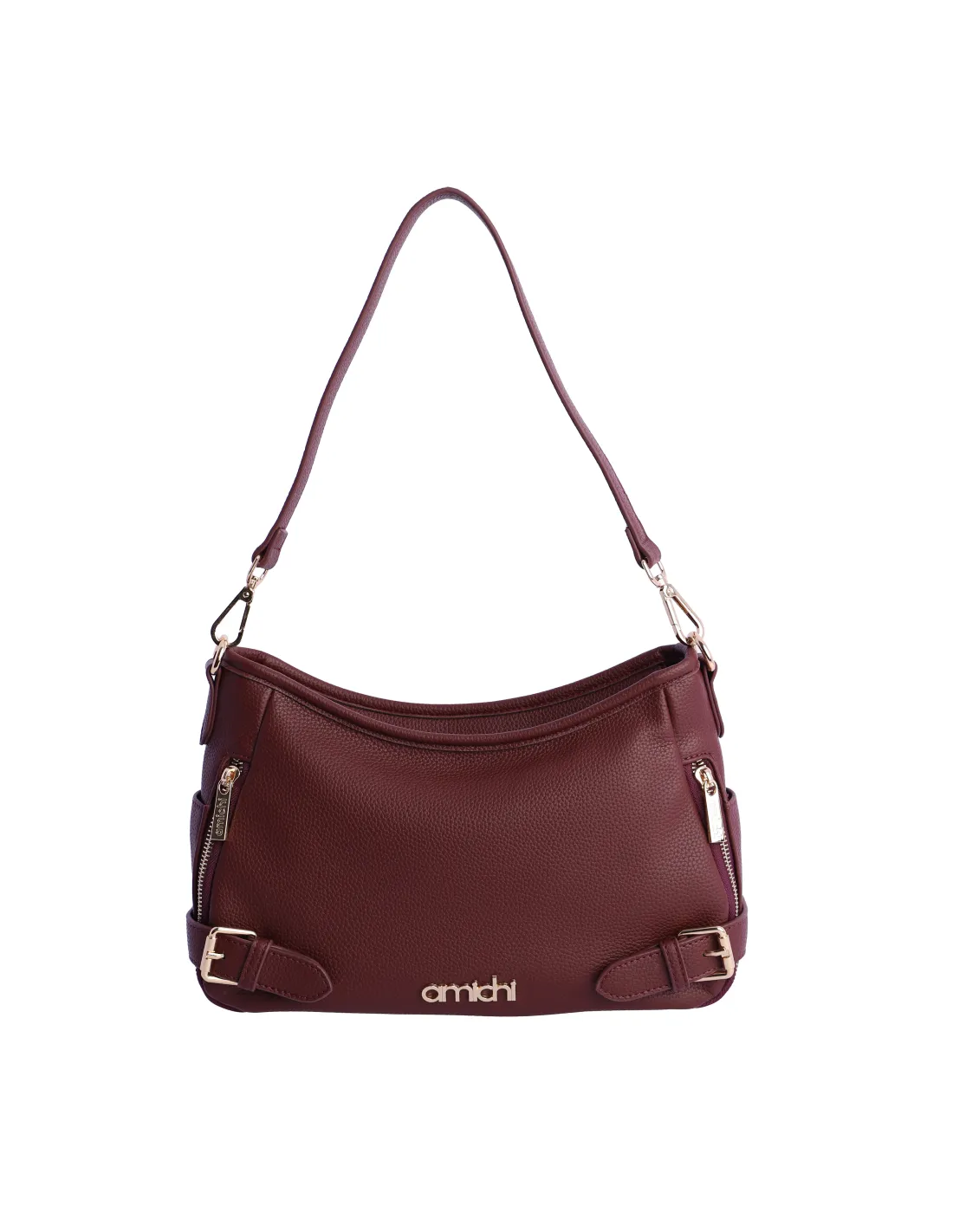 Bolso pequeño de Amichi, elegante y funcional, ideal para quienes buscan un complemento versátil. Con doble asa para poder llevarlo al hombro o cruzado tipo bandolera, se adapta a distintas ocasiones. Fabricado con materiales de buena calidad, su diseño compacto pero espacioso permite guardar lo esencial: móvil, cartera pequeña, llaves. Cierre seguro, detalles decorativos cuidados y acabado pulido que le da un toque sofisticado sin dejar de ser práctico. Perfecto para uso diario o salidas informales.