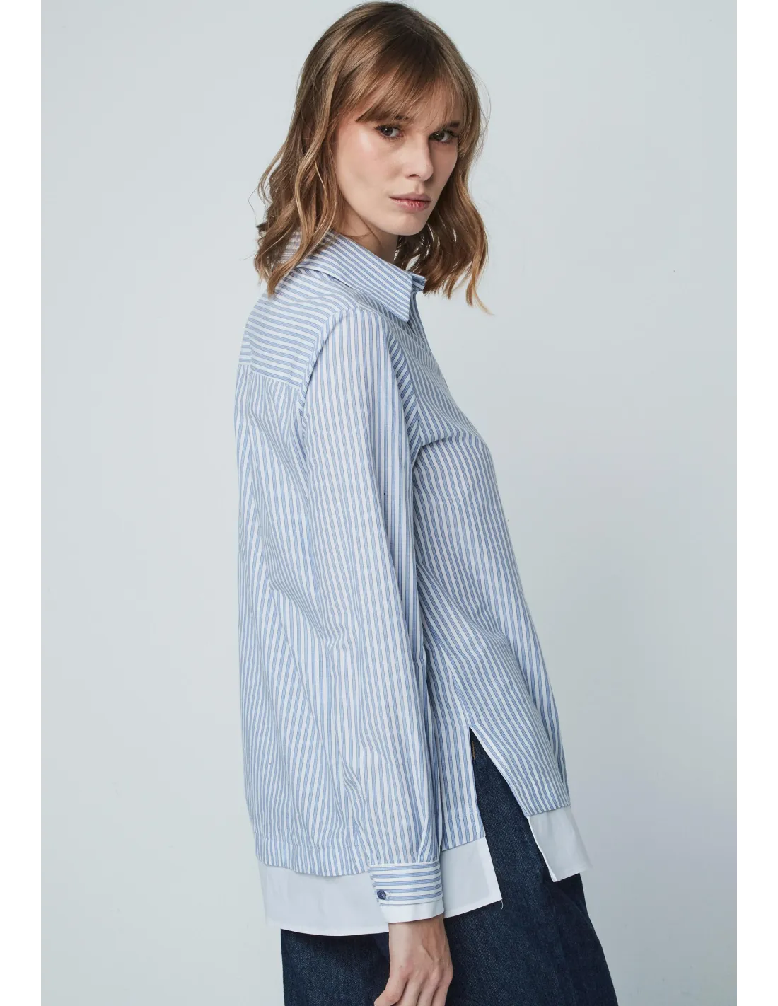 Camisa confeccionada con tejido principal 100% algodón, que ofrece una sensación suave, transpirable y cómoda durante todo el día. Su tejido secundario, compuesto por 97% algodón y 3% elastano, aporta un toque de elasticidad que mejora el ajuste y facilita el movimiento.