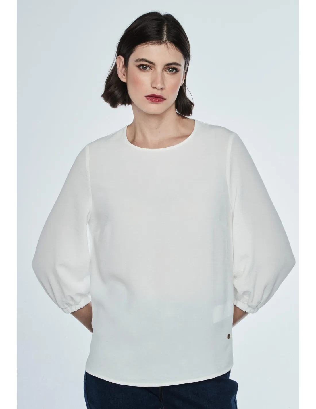 Las mangas 3/4 le dan un aire moderno y versátil, permitiéndote adaptarla a cualquier ocasión, desde un día de trabajo hasta un look más relajado para una salida casual. Su corte favorecedor y fluido se ajusta de manera cómoda y elegante, creando un look que destaca tu figura de forma sutil.