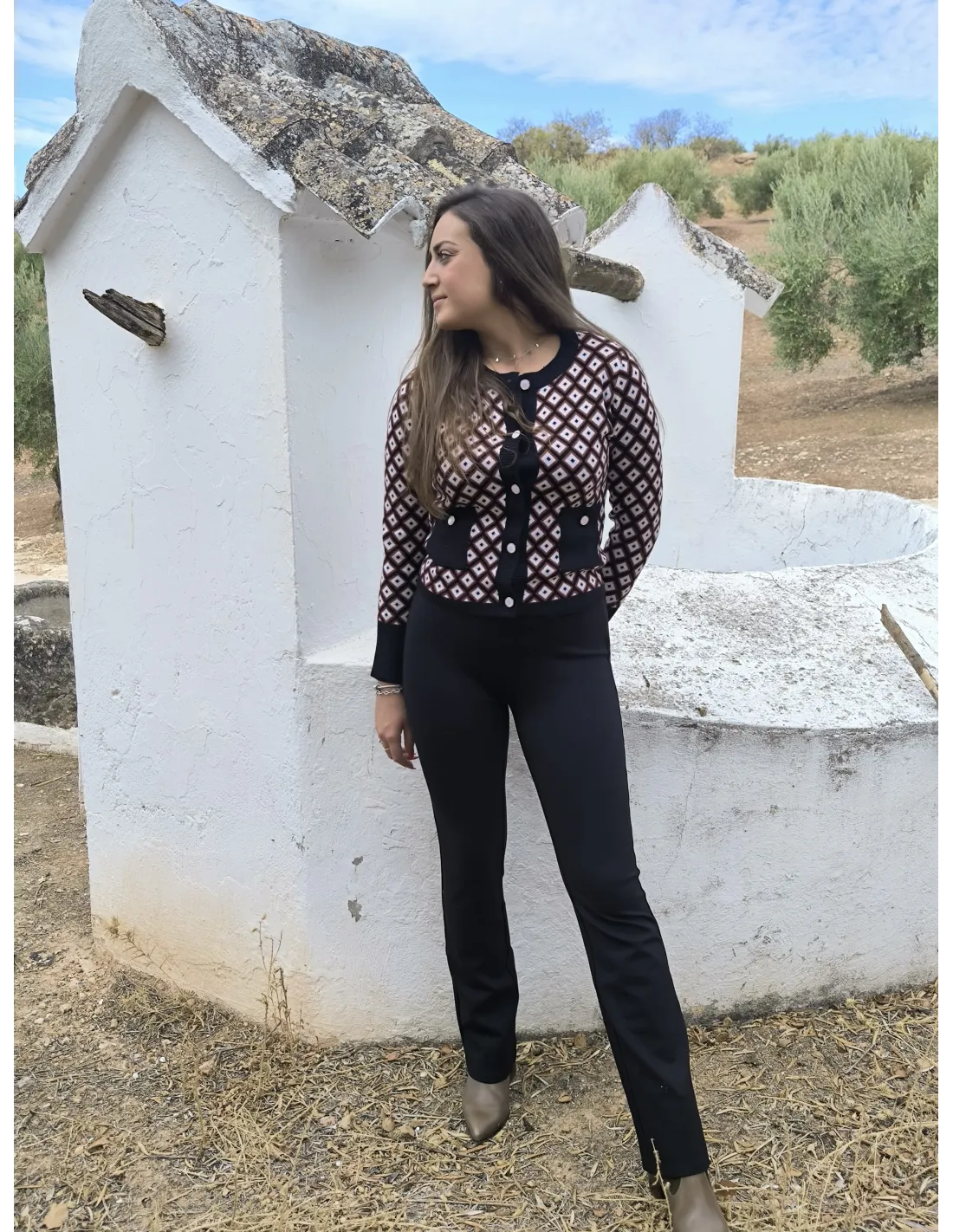 Chaqueta de la marca Amichi, de estilo elegante y atemporal, perfecta para cualquier ocasión. Se abrocha con botones en la parte delantera y está confeccionada con materiales de buena calidad que garantizan comodidad y durabilidad. Ideal para combinar con diferentes prendas y crear looks tanto informales como más sofisticados