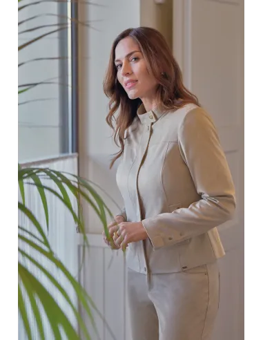 Chaqueta de estilo versátil, ideal tanto para el día a día como para ocasiones más arregladas. Cuenta con cierre de cremallera y botón en el cuello, lo que le da un toque elegante y práctico a la vez. Su diseño combina comodidad y estilo, perfecta para entretiempo o para completar cualquier look urbano. En muy buen estado y lista para usar.