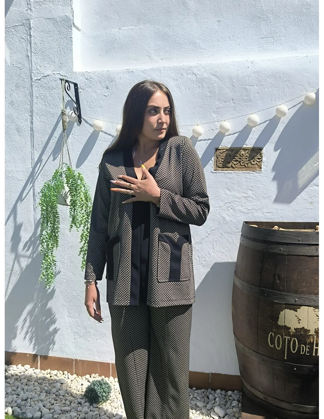 Pantalón de conjunto para vestir, diseñado para complementar la chaqueta a juego y crear un look elegante y equilibrado. Con un corte recto y favorecedor, aporta una silueta estilizada y cómoda al mismo tiempo. Confeccionado en un tejido de calidad que ofrece buena caída y un tacto suave, resulta ideal para ocasiones formales o para dar un toque sofisticado al día a día. Su diseño versátil permite combinarlo tanto con la chaqueta del conjunto como con blusas o camisas, convirtiéndolo en una prenda práctica, moderna y con mucho estilo.
