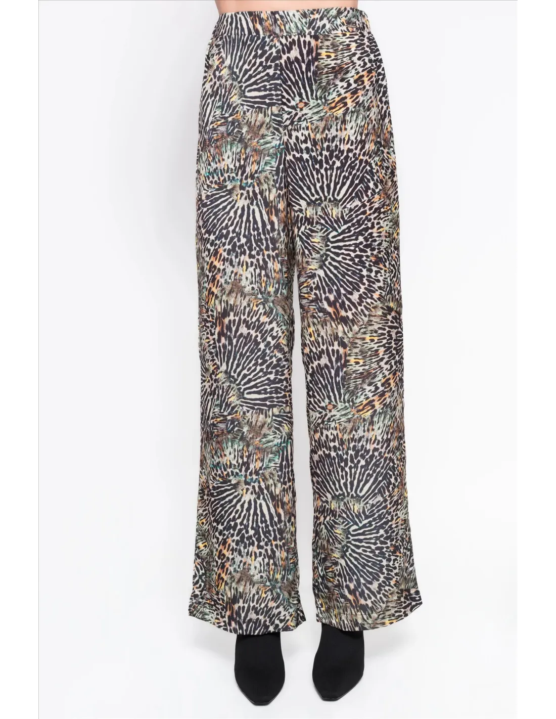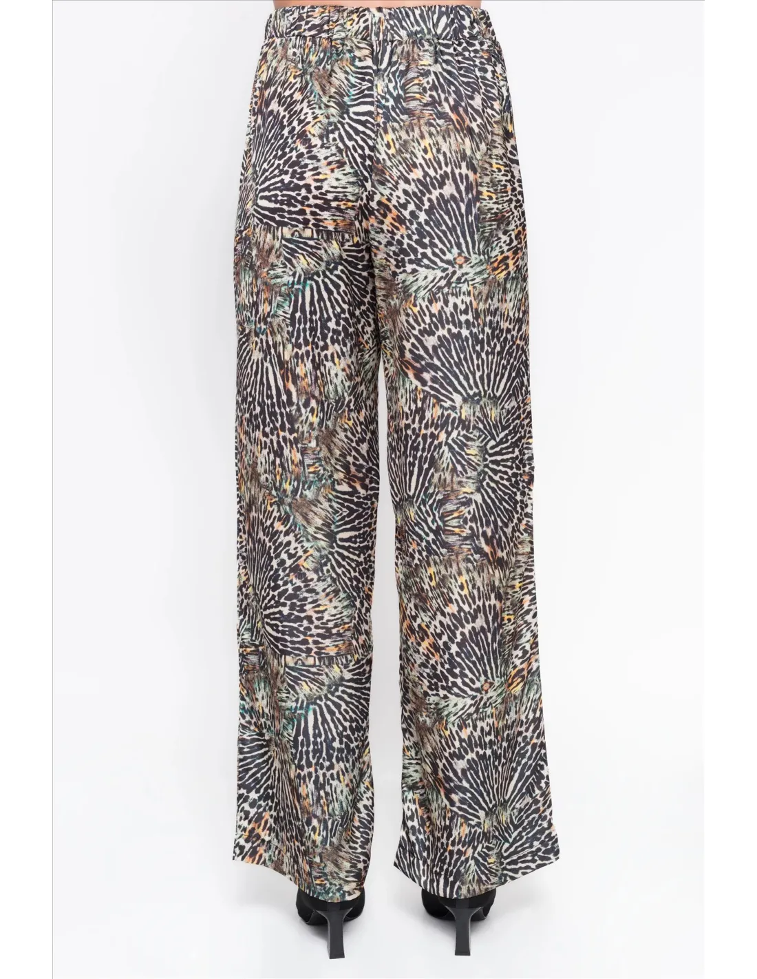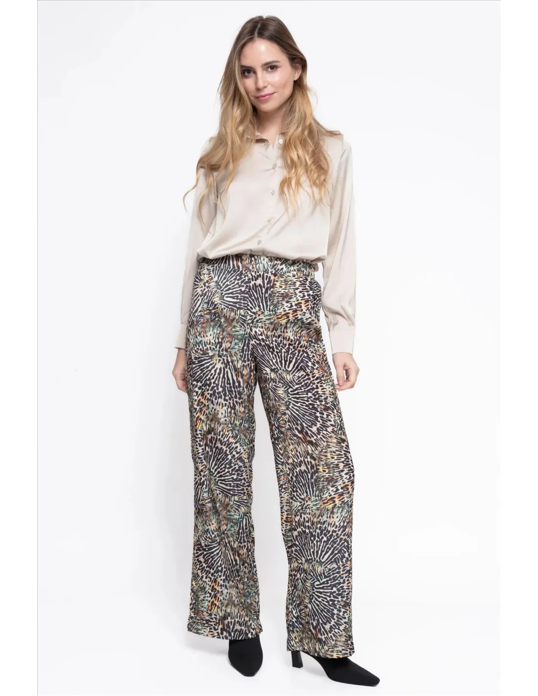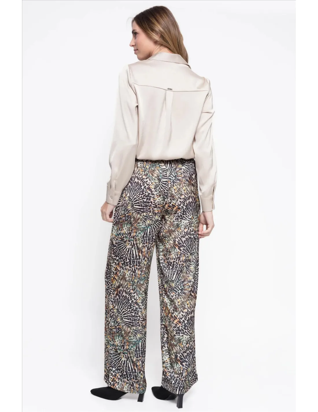 Este pantalón satinado con estampado animal print combina estilo y personalidad en una sola prenda. Su tejido suave y con ligero brillo aporta un toque sofisticado, mientras que el estampado le da un aire moderno y atrevido. Gracias a su corte fluido, ofrece una silueta elegante y cómoda, perfecta para destacar en cualquier ocasión. Puede usarse con una blusa sencilla o una camiseta básica para un look casual chic, o con una prenda más estructurada y tacones para un conjunto más arreglado. Una pieza versátil que eleva cualquier outfit con un toque de glamour.