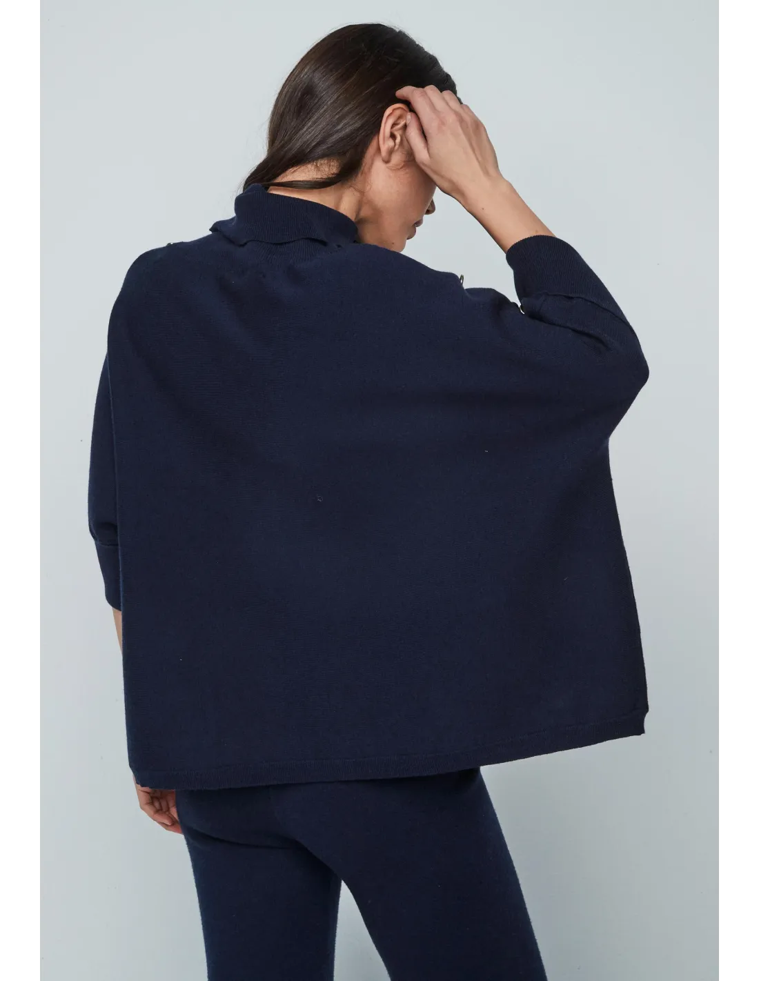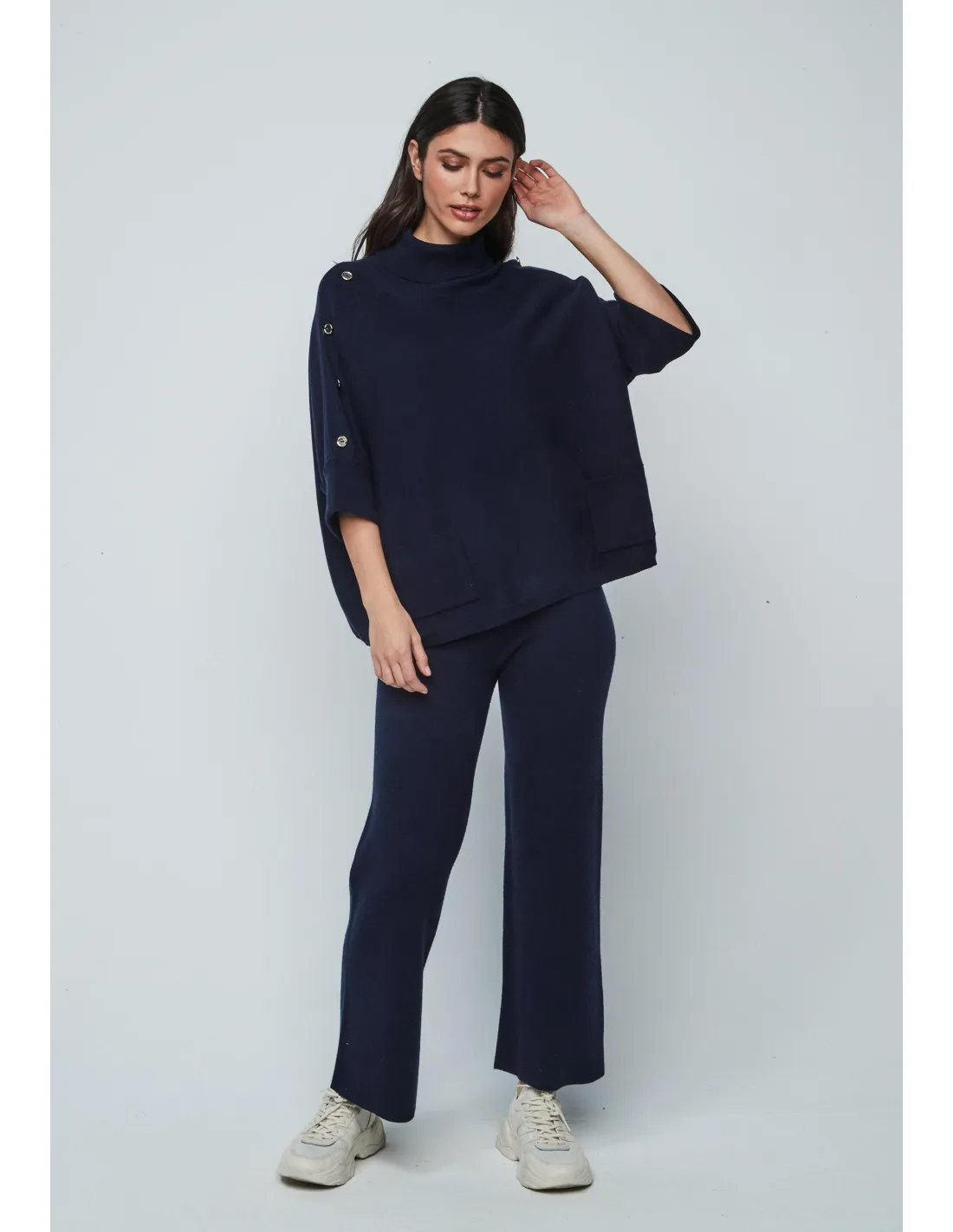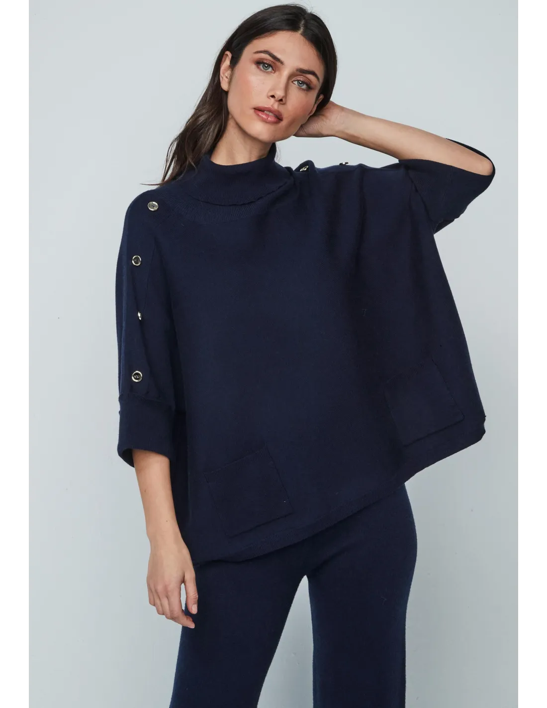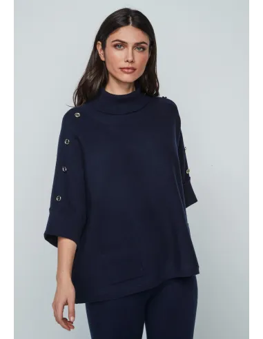 Este jersey de mujer de corte amplio y cuello alto ofrece un estilo moderno y muy cómodo, ideal para el día a día. Incorpora prácticos bolsillos frontales y elegantes botones decorativos en el hombro, además de unas mangas 3/4 que aportan un toque desenfadado y favorecedor. Está confeccionado en un tejido suave y resistente compuesto por 50% viscosa, 25% poliéster y 25% poliamida, lo que garantiza una caída ligera, gran confort y durabilidad. Una prenda versátil y estilosa para completar cualquier look con personalidad.
