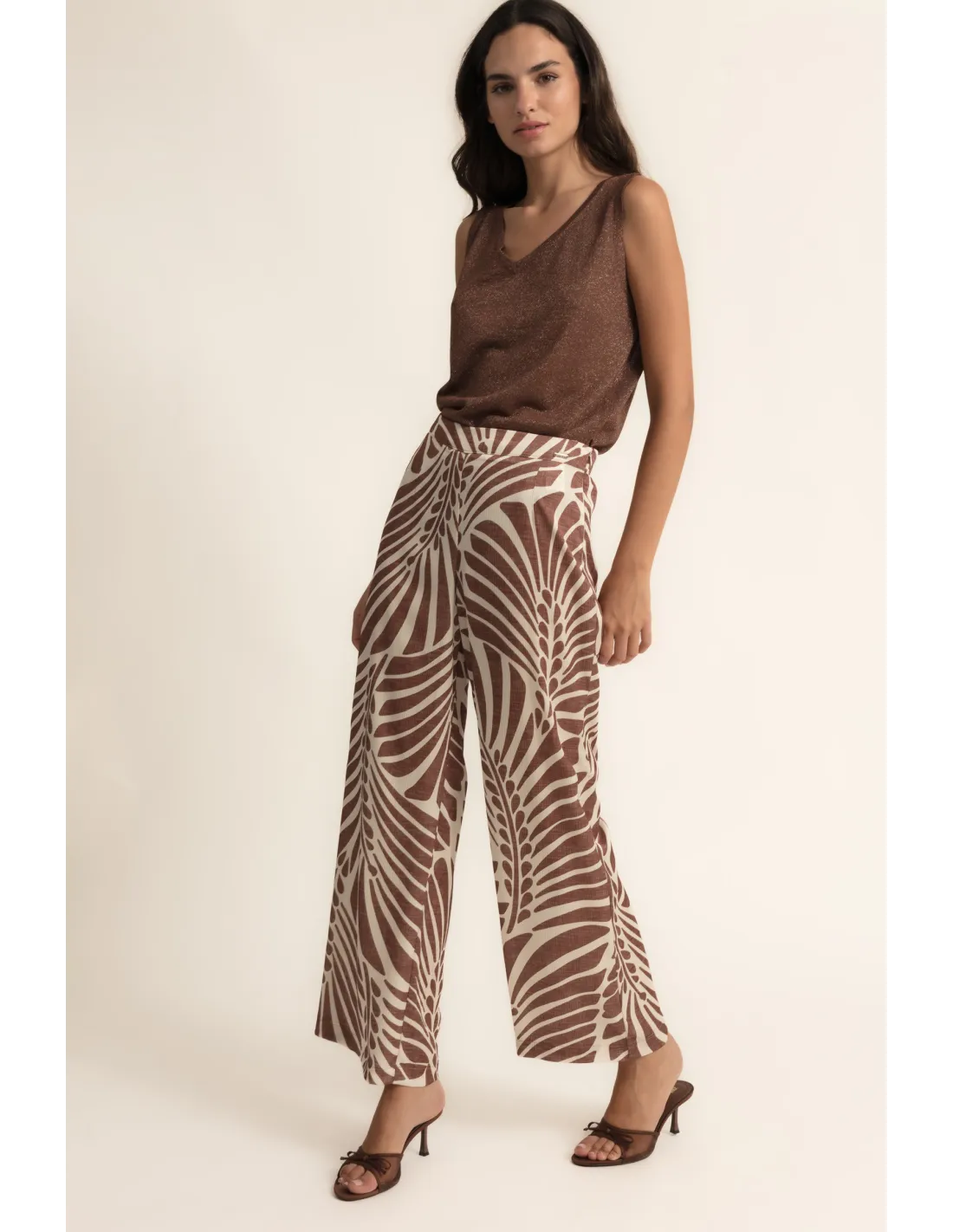 El Chaleco-Blusa Juliet es la combinación ideal entre la estructura de la sastrería moderna y la frescura de los tejidos ligeros. Diseñada para la mujer que busca comodidad sin sacrificar el estilo, esta prenda destaca por su estampado orgánico de hojas en tonalidades neutras, fácil de adaptar a cualquier ocasión.