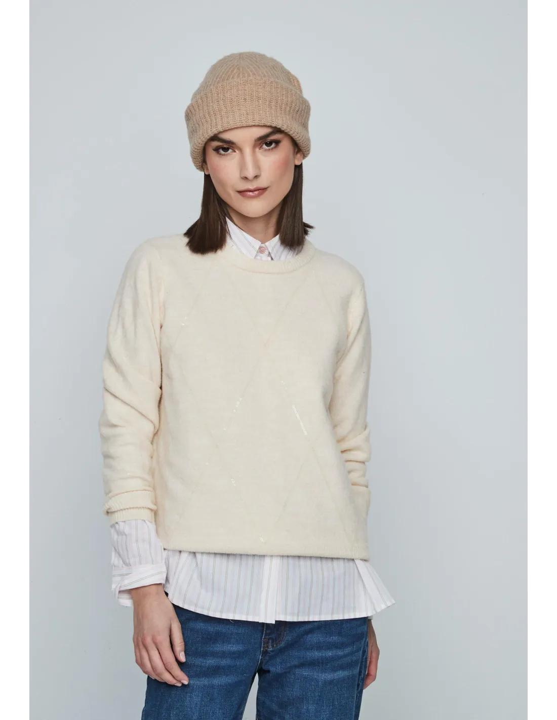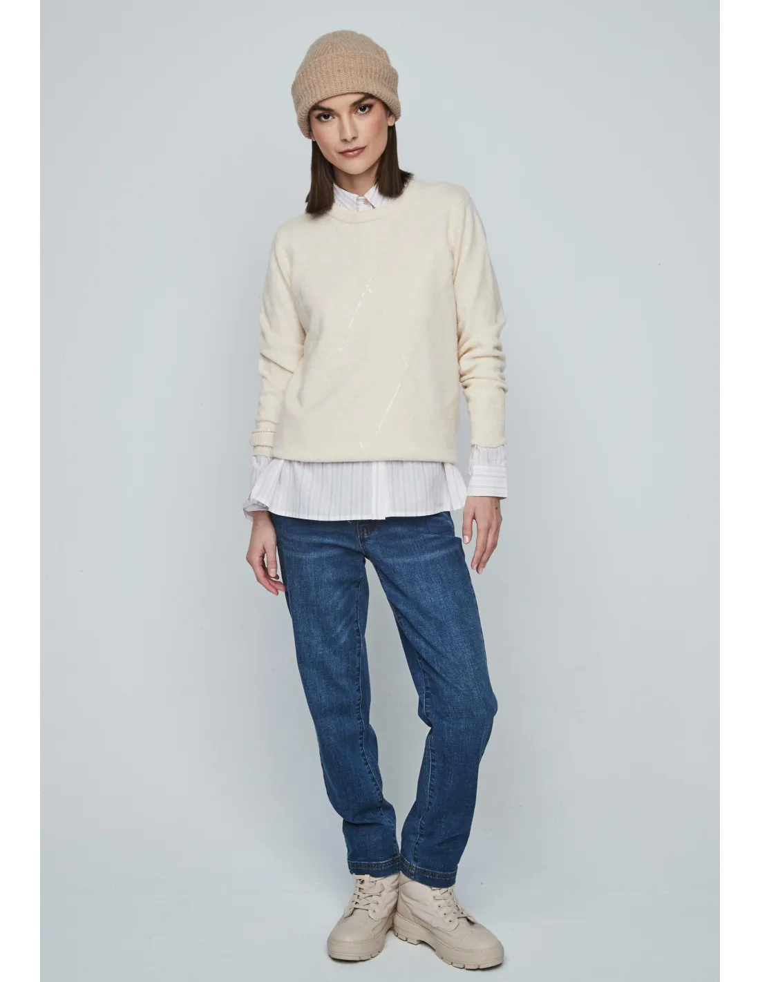 Este jersey de mujer de cuello redondo y manga larga está pensado para quienes buscan un toque especial en su día a día. Su diseño sencillo y favorecedor se realza con delicados detalles de lentejuelas que aportan luz sin resultar excesivos, creando un estilo elegante y fácilmente combinable. Gracias a su mezcla de tejidos, ofrece una sensación suave y cómoda: el acrílico aporta calidez, el poliéster garantiza durabilidad y el elastano añade la flexibilidad justa para adaptarse al cuerpo con naturalidad. El resultado es una prenda ligera, agradable al tacto y perfecta tanto para looks casuales como para dar un aire más sofisticado a cualquier conjunto. Un jersey pensado para acompañarte con estilo en cualquier ocasión.