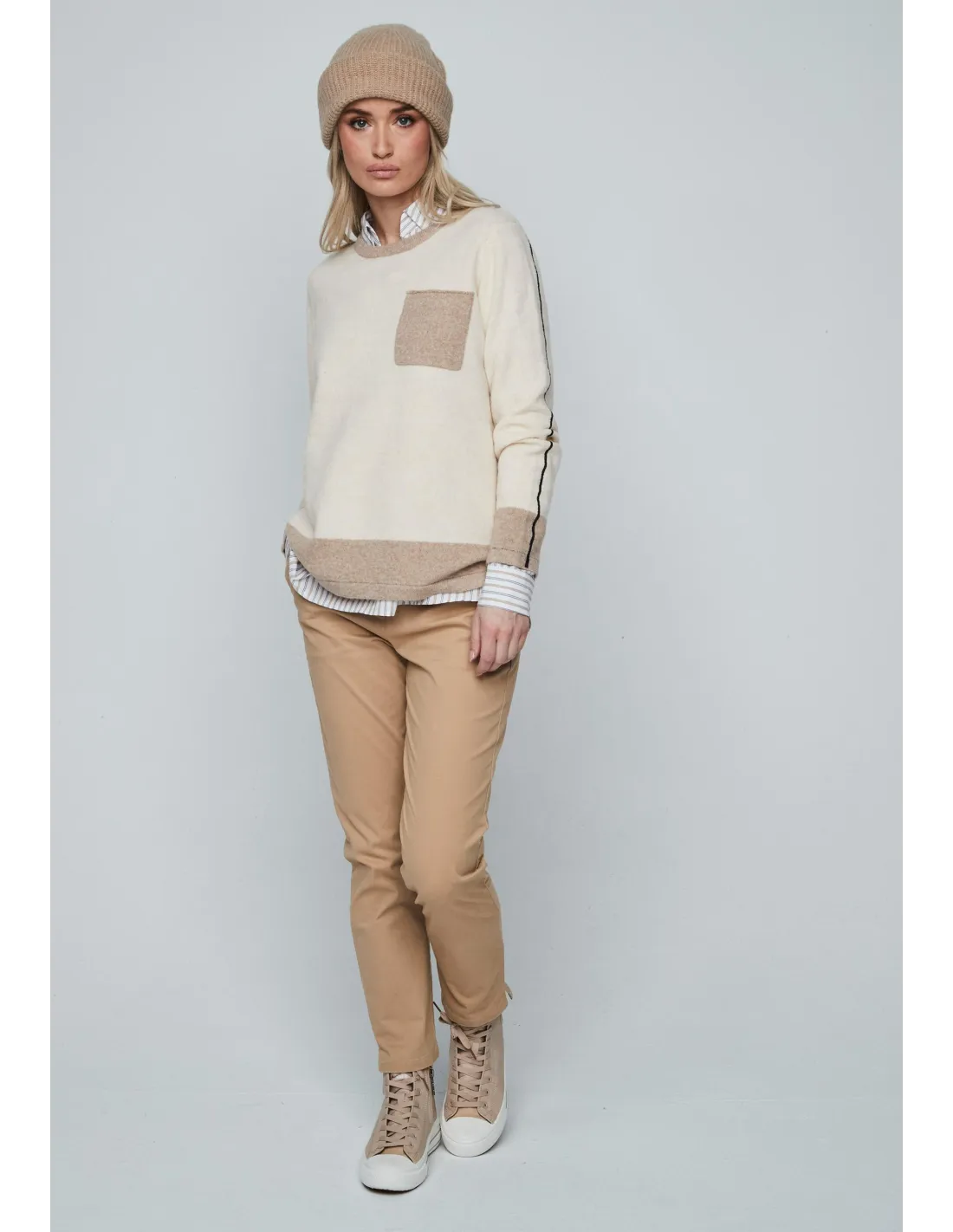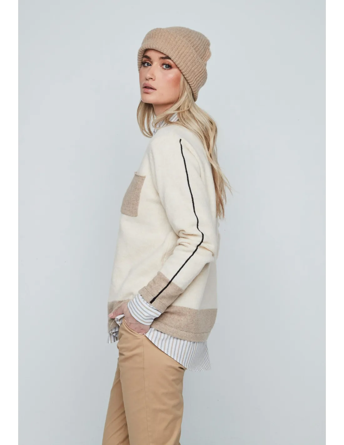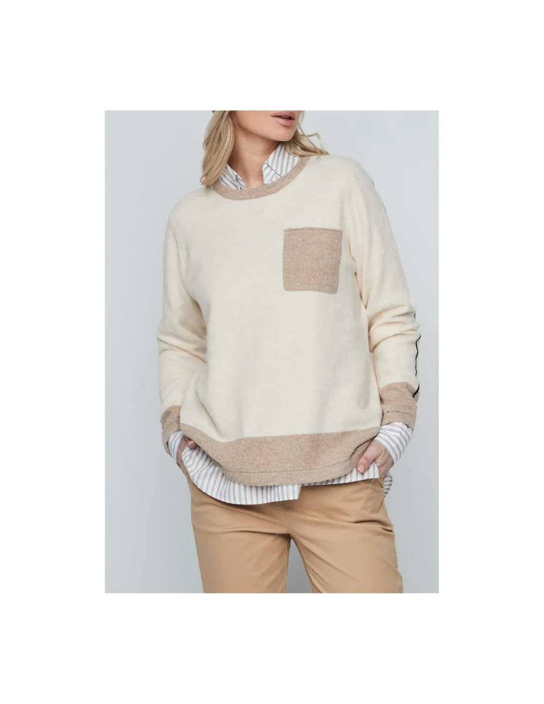 Este jersey de mujer de cuello redondo y manga larga es de esos que te pones un día por probar y al final no te lo quieres quitar, porque sienta bien con todo y tiene ese puntito especial del bolsillo delantero que lo hace distinto sin llamar demasiado la atención. El tejido es suave y muy agradable, con una mezcla pensada para que mantenga la forma y no pique: 69% acrílico, 29% poliéster y un 2% de elastano que le da la flexibilidad justa para que quede bonito sin apretar. Es perfecto para llevarlo a diario, combinarlo con vaqueros o incluso con falda si te apetece, y te va a resultar súper cómodo desde el primer momento.