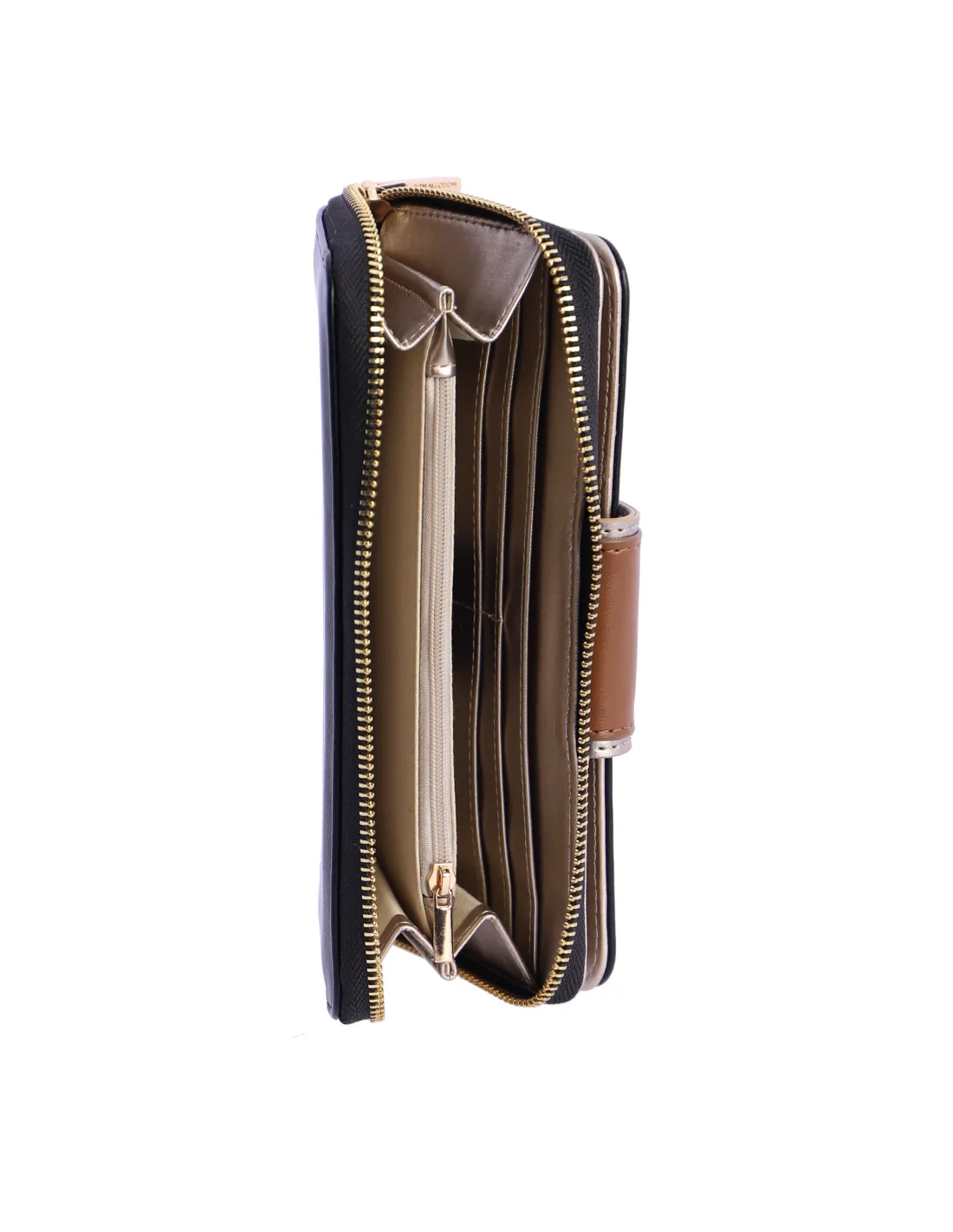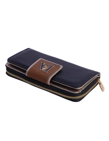 Dispone de espacios dedicados para tarjetas, billetes, monedas y documentos, lo que facilita su uso diario. Su diseño compacto permite llevarla cómodamente en el bolso o en la mano, sin ocupar demasiado espacio.