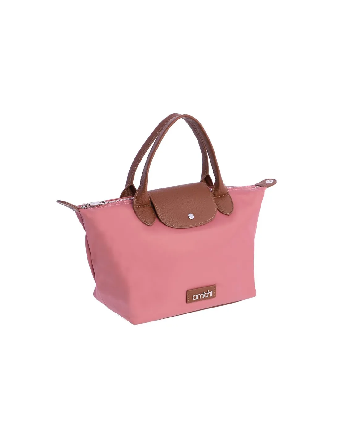 Este bolso de mano de Amichi en color coral se convierte en el protagonista indiscutible de cualquier estilismo gracias a su tono vital y sofisticado. Su silueta de mano aporta un aire distinguido, ideal para eventos, reuniones de trabajo o las mañanas de domingo en nuestra localidad. La gran ventaja de este diseño es su capacidad de transformación: gracias a la cinta adicional extraíble, se puede convertir fácilmente en una bandolera cómoda y desenfadada, permitiendo tener las manos libres sin perder un ápice de estilo.
