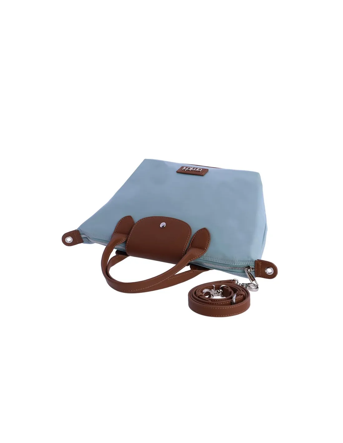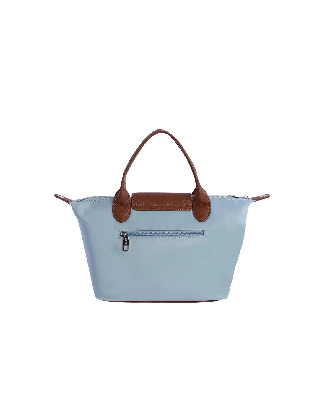 Confeccionado con materiales de textura suave que mantienen la estructura del bolso impecable, cuenta con acabados minuciosos y detalles metálicos que resaltan sobre el fondo azul. El interior está optimizado para organizar lo esencial en un tamaño pequeño-mediano muy manejable. Es la elección predilecta para quienes buscan un accesorio que funcione como una pieza de mano refinada y, al mismo tiempo, como un bolso todoterreno capaz de combinar tanto con unos jeans informales como con un traje de chaqueta más formal.