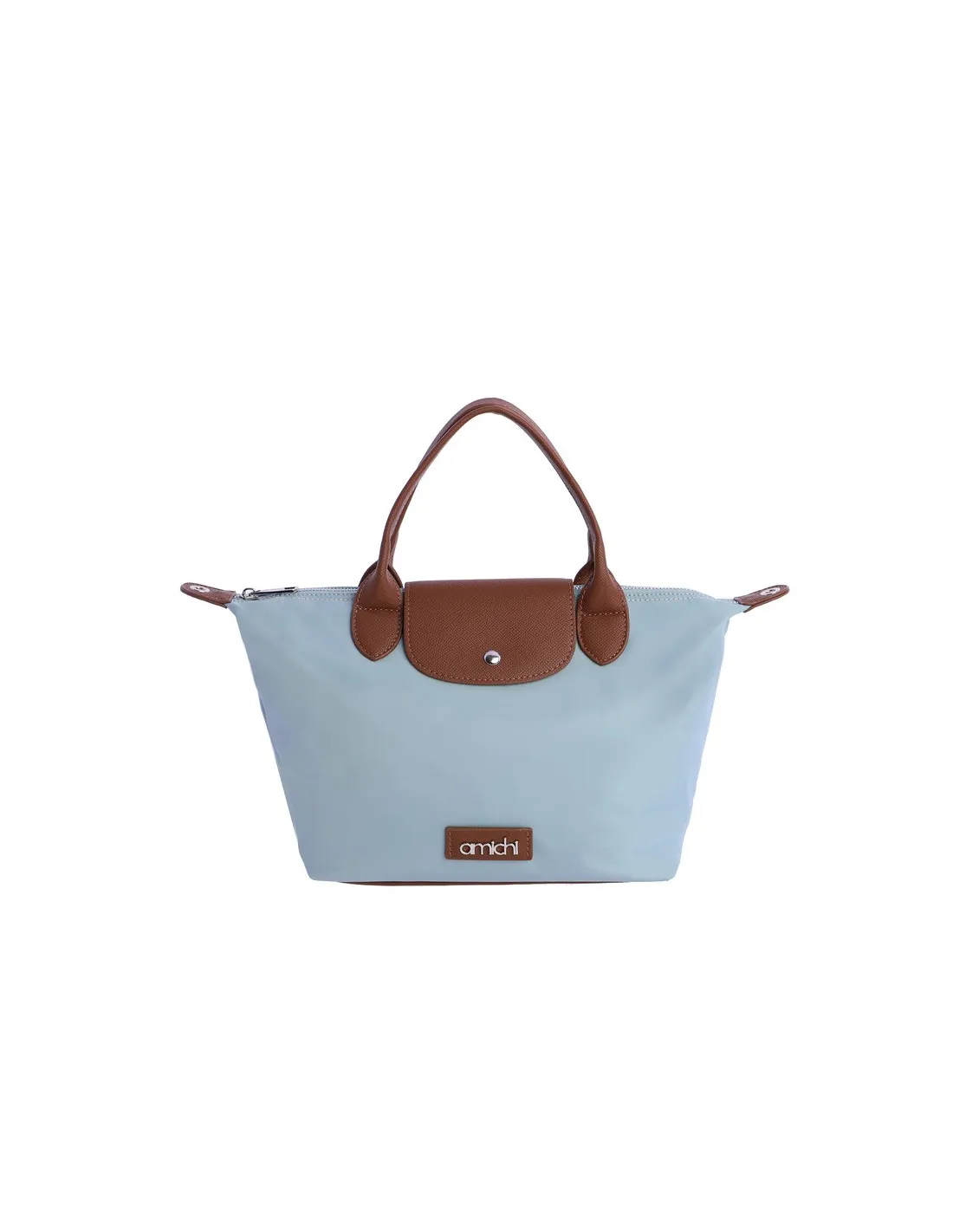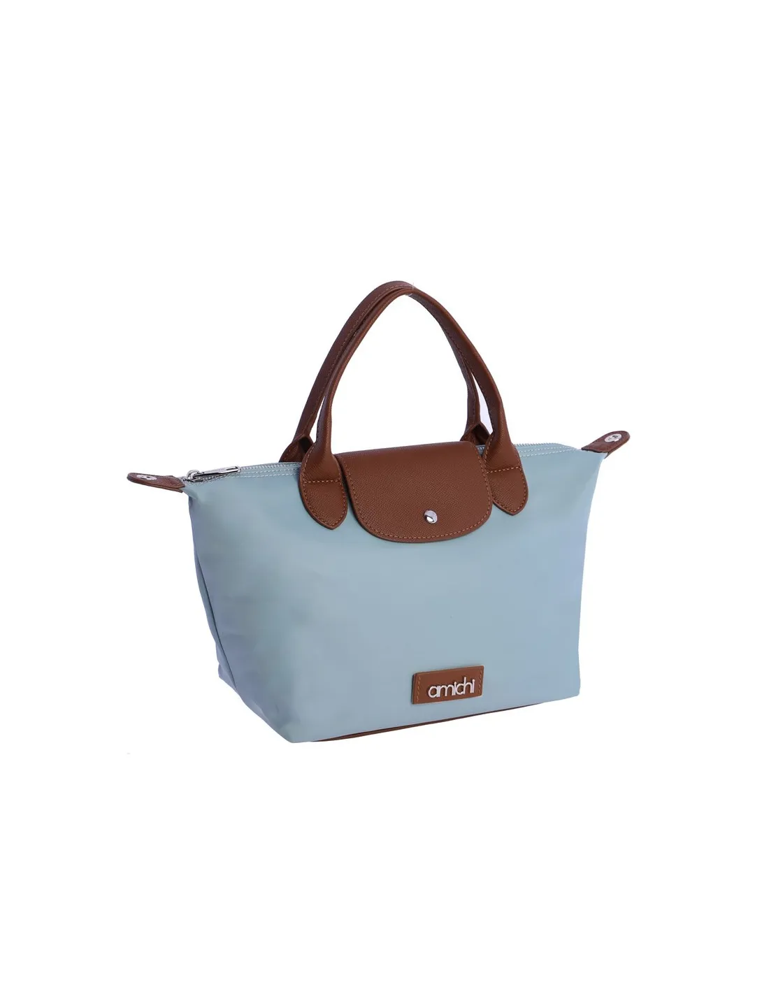 El bolso de mano Amichi en color azul es una pieza que desprende serenidad y elegancia clásica, destacando por su diseño estructurado y su gran versatilidad. Este modelo de tamaño medio incorpora una práctica cinta extra que permite transformarlo en bandolera al instante, adaptándose con facilidad al ritmo de la mujer actual. Su tonalidad atemporal es ideal para aportar un toque de distinción a cualquier estilismo, logrando el equilibrio perfecto entre la sobriedad de un bolso de mano y la funcionalidad necesaria para el día a día.