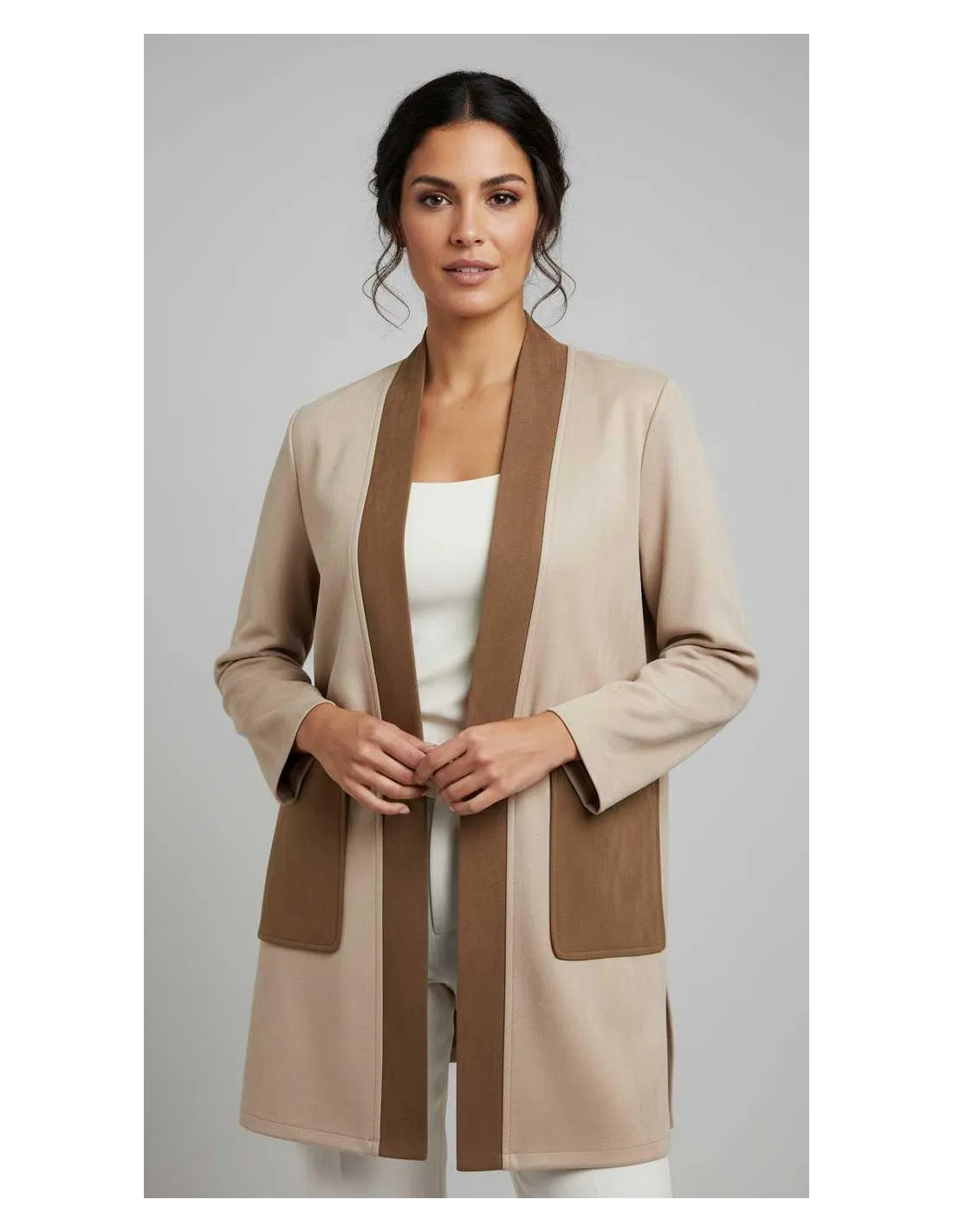 La chaqueta de antelina en tono verde tiene un estilo muy cuidado y un tacto suave que la hace cómoda desde el primer momento. El color verde le da un aire fresco y distinto, y los bolsillos en beige aportan un contraste muy bonito sin restarle naturalidad. Es ligera, fácil de combinar y perfecta para esos días en los que quieres un toque especial sin ir demasiado arreglada. De esas prendas que suman personalidad al look sin esfuerzo y que te acompañan temporada tras temporada.