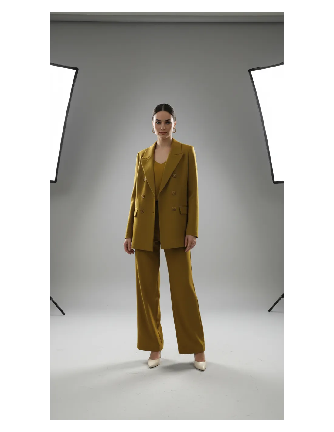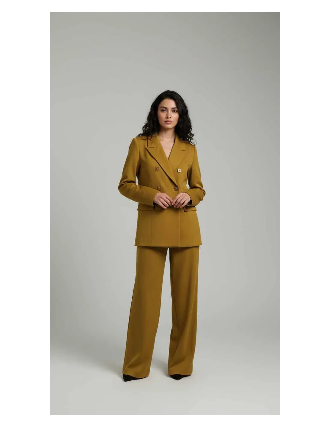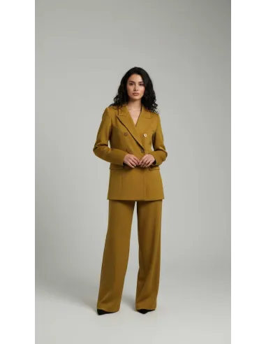 Este conjunto gante en color mostaza es de esos que te pones y automáticamente te ves diferente: favorece muchísimo, tiene un punto moderno sin perder la elegancia y el color aporta luz al instante. La chaqueta tiene una caída muy bonita, estiliza un montón y da ese aire sofisticado que queda bien tanto para un día especial como para ir arreglada sin excesos. El pantalón acompaña a la perfección, cómodo, con un corte que sienta fenomenal y que hace que el conjunto se vea equilibrado y actual. Es un traje muy versátil, lo puedes llevar junto para un look más potente o combinar cada pieza por separado y sacarle muchísimo partido. Un conjunto pensado para lucirlo sin esfuerzo y que, seguro, se va a convertir en uno de tus preferidos.