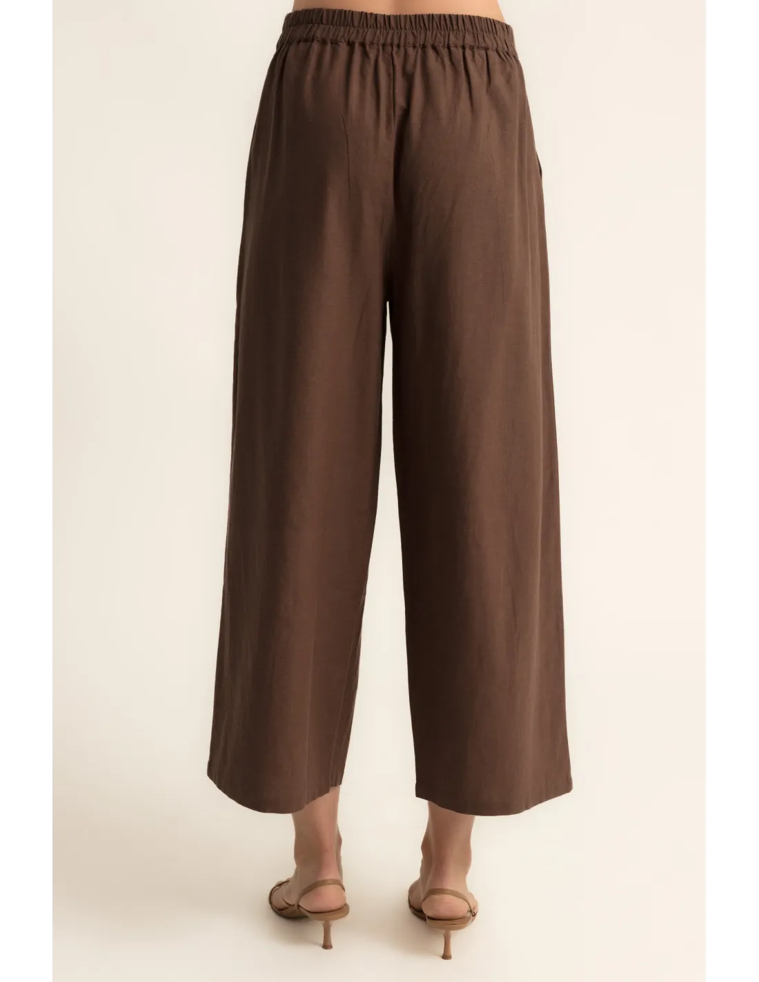 Descubre el equilibrio perfecto entre confort y sofisticación con nuestro pantalón de corte ancho en tono marrón chocolate. Confeccionado en un tejido ligero con caída impecable, su diseño de tiro alto y silueta cropped estiliza la figura sin renunciar a la libertad de movimiento. La prenda esencial para un fondo de armario atemporal y versátil.