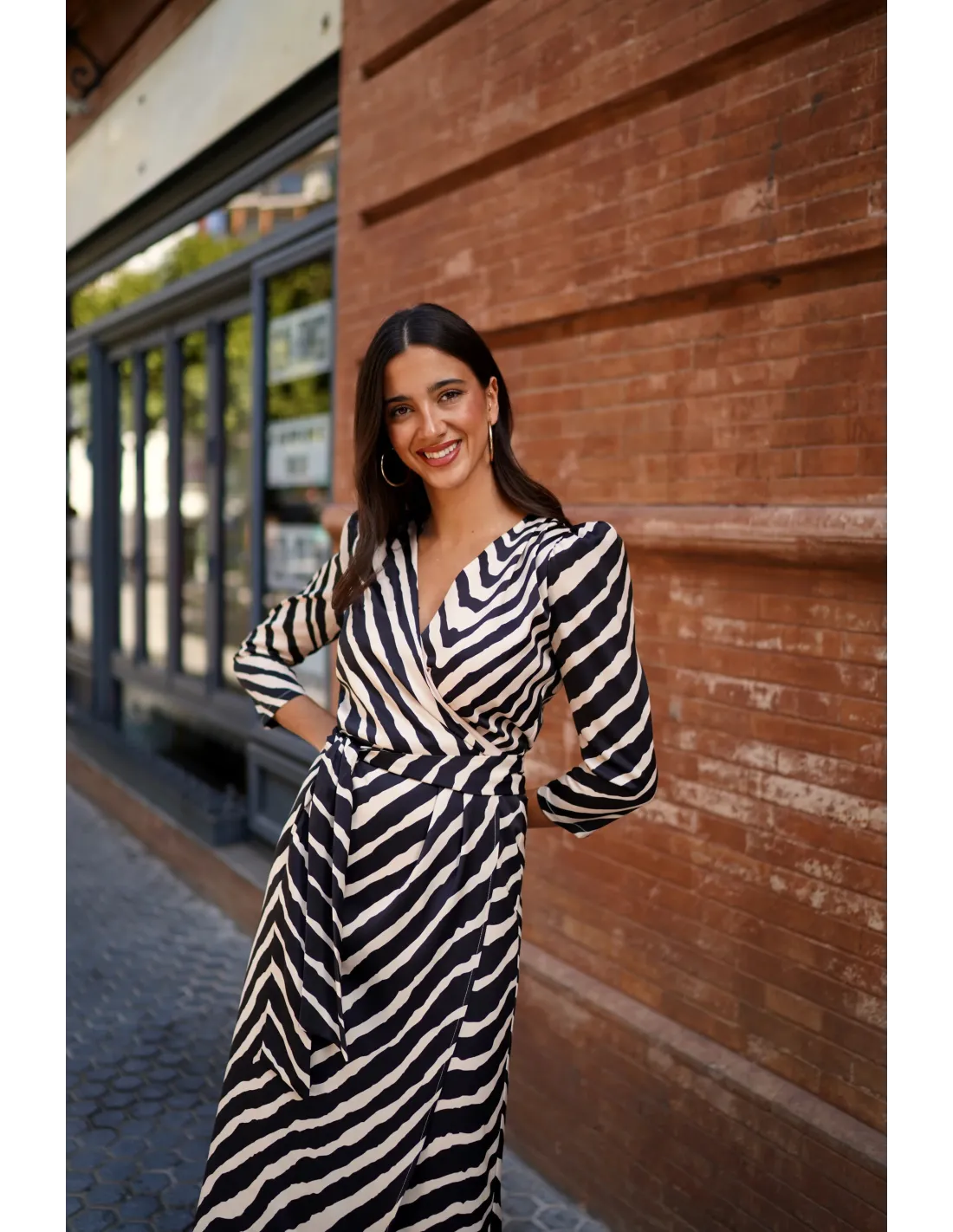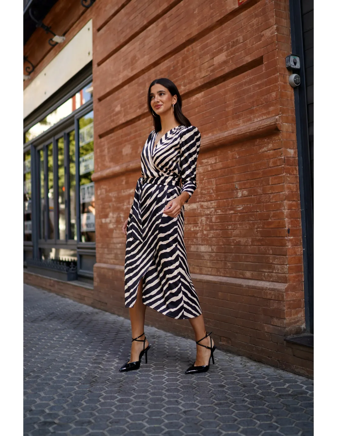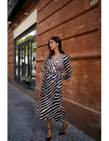El vestido cruzado estampado negro es una prenda elegante y versátil que combina estilo y comodidad. Su diseño cruzado realza la figura de manera natural, mientras que el estampado sutil aporta un toque moderno y sofisticado. Confeccionado en un tejido ligero y de caída suave, se adapta perfectamente al cuerpo y ofrece libertad de movimiento. Ideal tanto para el día como para la noche, este vestido es una opción perfecta para quienes buscan un look femenino, actual y fácil de combinar con diferentes accesorios.